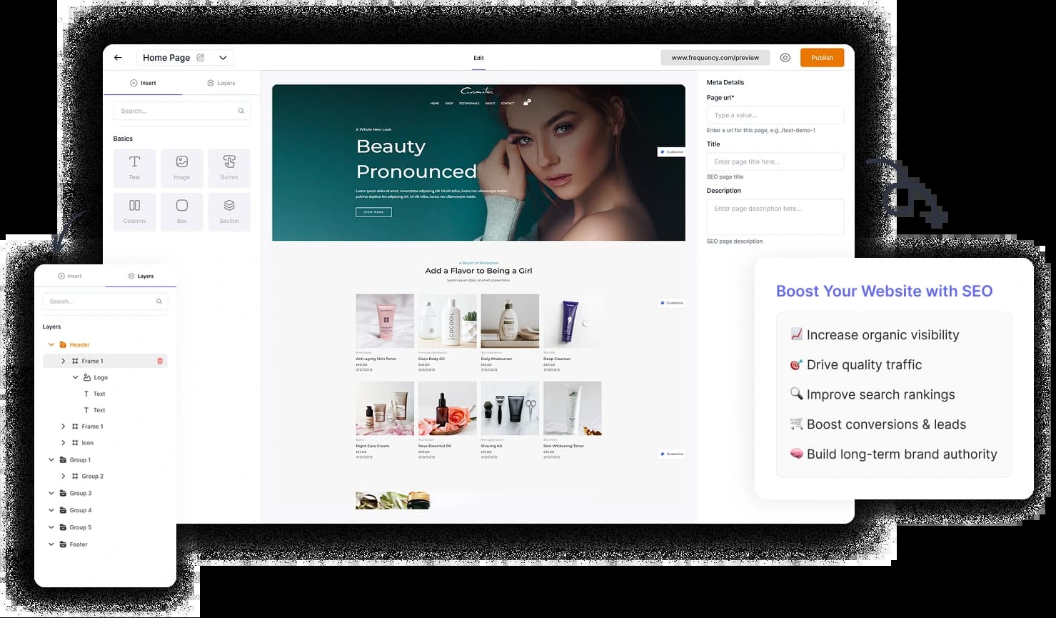 Effortlessly create and customize your website to perfectly fit your business needs.